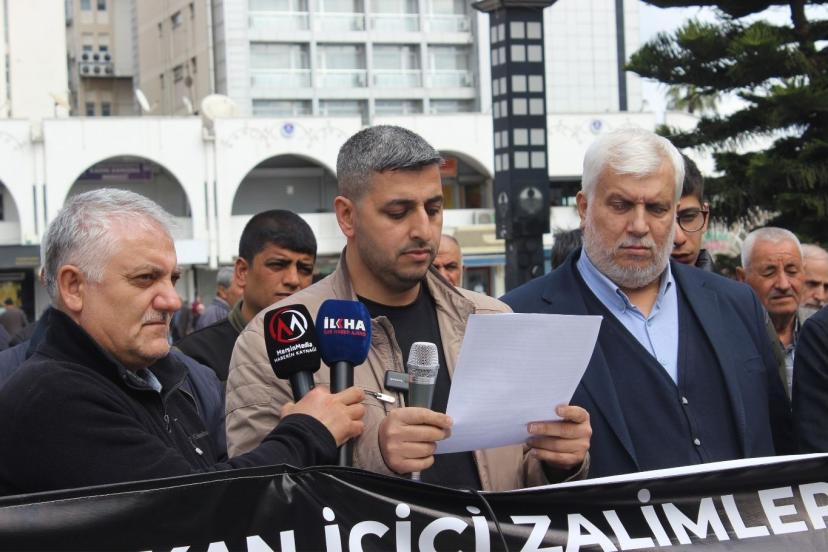 Mersin Ulu Camii’nde cuma namazı çıkışında gerçekleştirilen basın açıklamasını Peygamber Sevdalıları adına Abdullah Biçer okudu.