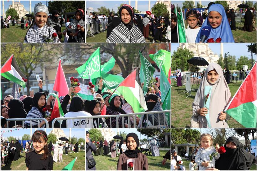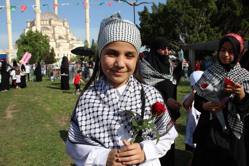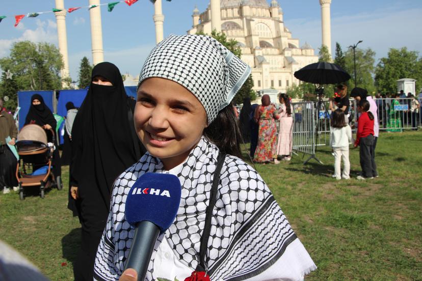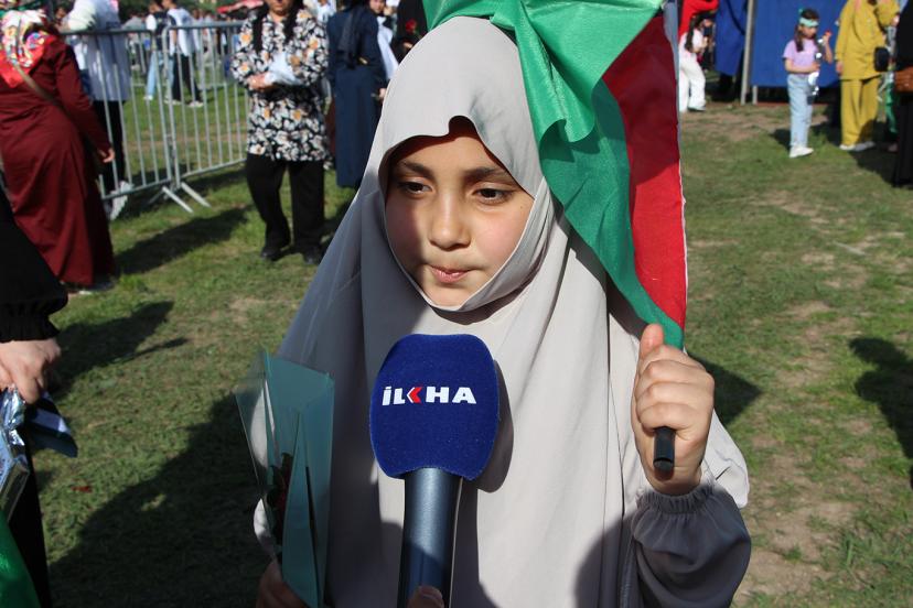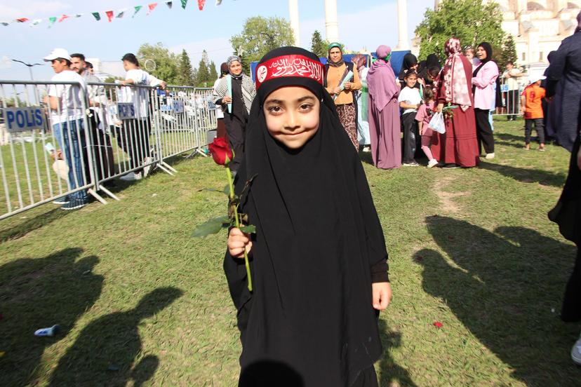 Meryem Eslem Kocabey ise "Peygamberimizi çok seviyorum. Ben O'nun yolundan gidiyorum ve gitmeye devam edeceğim. Annem, teyzelerim ve kuzenlerim ile geldik. Gelmeyenler çok pişman çünkü burası çok güzel bir yer, dualar ilahiler okunuyor ve bayraklar sallanılıyor. Burada ki kardeşliğimiz artıyor. Peygamberimize güvendiğimizde kendimizi çok iyi hissediyoruz." dedi.