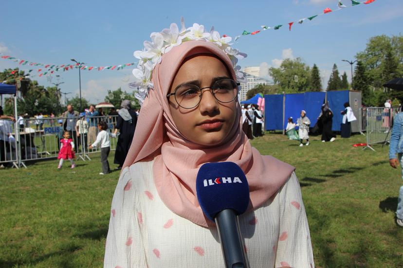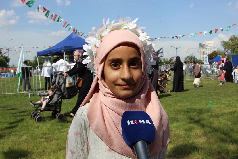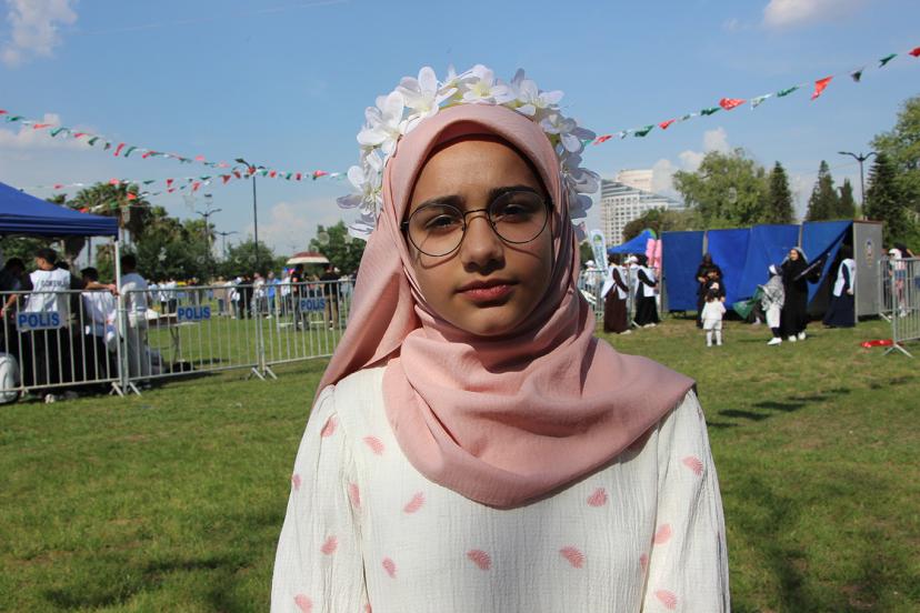 "Mutlu hissediyorum, ilk defa buraya geldim. Hiç gelmemiştim buraya, arkadaşlarımla beraber geldim. Bizi ablalar ve hocalar hazırladı. İlahi söyleyeceğiz. Gelmeyenler Peygamber Efendimizi umursamadıklarını ve istemediklerini düşünürüm."