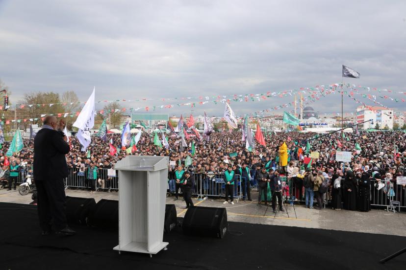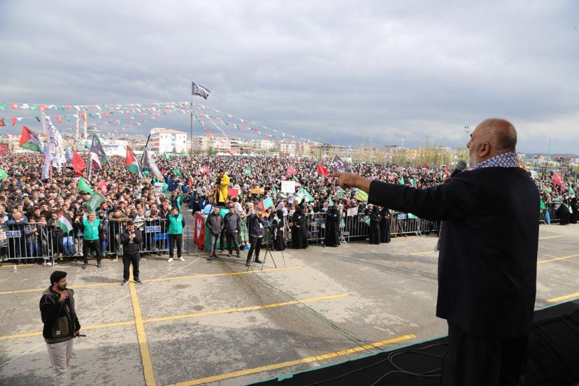 İran'a karşı yürütülen savaşa dikkat çeken Uysal, "İran'ın mücadelesini de tebrik ediyoruz. Onların cesaretlerini de tebrik ediyoruz. 40 gün içinde ne kadar siyonist varsa yerin dibine battılar. Kendilerini gizlemişler. Korkudan dışarı çıkmıyorlar. Fakat İran halkı meydanlardadırlar. Bu da bizlere şunu gösteriyor; Ey Ümmet! Bugün kardeşlik günüdür. Bugün aslanların günüdür. Bugün meydana akın etme günüdür, boş şeylerden, kafirleri sevindirecek şeylerden sakınmamız lazım." şeklinde konuştu.