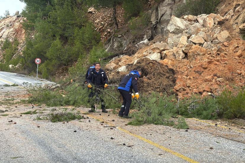 MUĞLA'nın Milas ilçesinde sağanak sonrası toprak kayması meydana geldi. Ekipler, kısmen kapanan yolu temizlemek için çalışma başlattı.