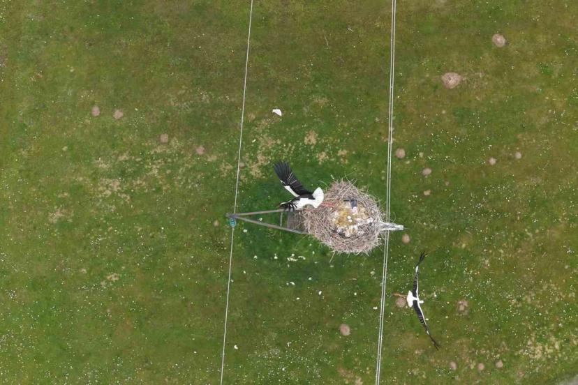 Muş Ovası’na bahar mevsimiyle dönen leylekler yumurtlamaya başlayarak, yaklaşık 35 gün sürecek kuluçka dönemine hazırlanıyor.