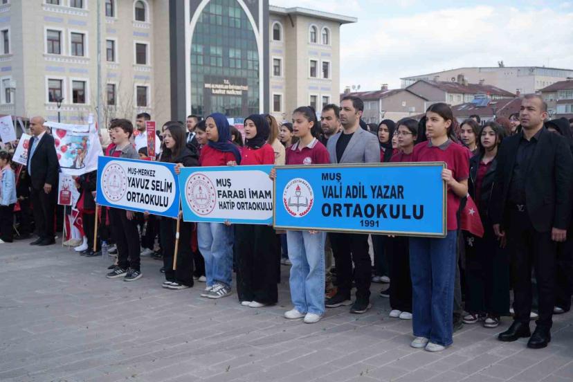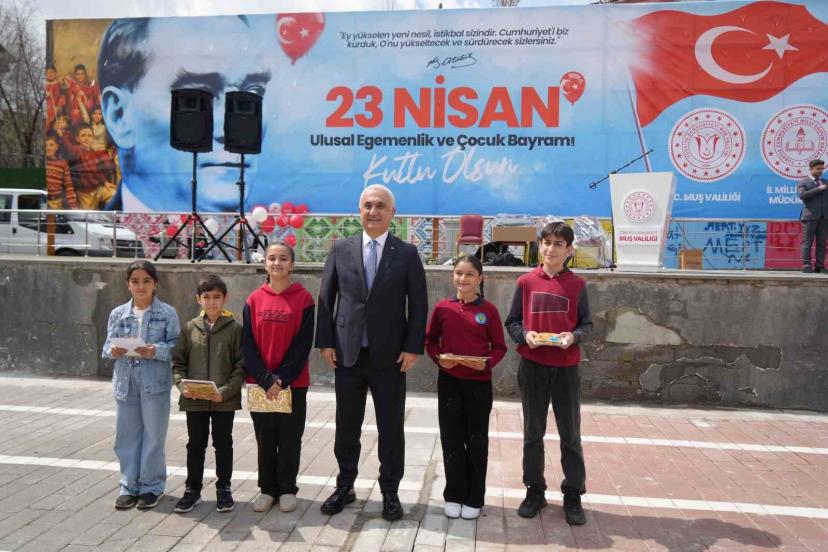 Muş’ta 23 Nisan Ulusal Egemenlik ve Çocuk Bayramı Kent Meydanı’nda gerçekleştirilen törenle başladı. Tören kapsamında İl Milli Eğitim Müdürü Abdulkadir Altay tarafından Atatürk heykeline çelenk sunuldu. Çelenk sunumunun ardından saygı duruşunda bulunuldu ve İstiklal Marşı okundu. Programda konuşan Vali Avni Çakır, sözlerine Şanlıurfa ve Kahramanmaraş’ta yaşanan saldırılarda hayatını kaybeden öğretmen ve öğrencileri anarak başladı. Yaşanan acıların gölgesinde 23 Nisan’ın buruk bir şekilde idrak edildiğini ifade eden Çakır, "Bugün sadece bir bayramı kutlamıyoruz. Bugün, bir milletin sahip çıktığı, iradesini tüm dünyaya ilan ettiği ve geleceğini sizlere emanet ettiği büyük bir dönüm noktasını yaşıyoruz. Sizler; bu ülkenin umudu, enerjisi ve yarınlara uzanan en sağlam köprüsüsünüz. Sizler sadece büyüyecek bireyler değil, bu milletin yarınlarını şekillendirecek akıl, vicdan ve cesaretsiniz" dedi.