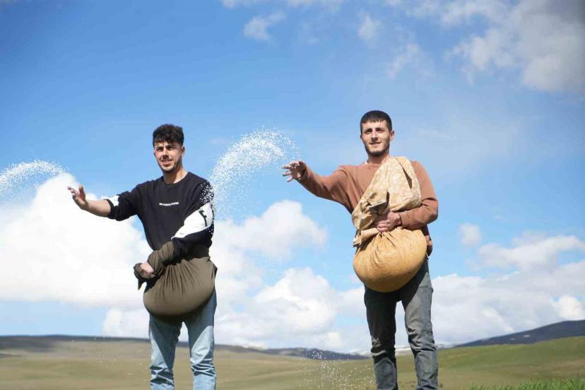 Muş’ta baharın gelişiyle birlikte çiftçiler tarlalara inmeye başladı. Kırköy beldesinde üreticiler, sezonun ilk tarla çalışmalarını gübre serperek gerçekleştirdi. Bu yıl etkili olan yoğun yağışlar nedeniyle tarlaların ıslak olması tarım araçlarının araziye girişini zorlaştırdı. Traktörlerin giremediği alanlarda ise iş başa düştü. Beldede bir araya gelen genç çiftçiler, dedelerinden ve babalarından miras kalan imece geleneğini sürdürerek tarlalara gübre serpti. El birliğiyle çalışan gençler, geniş tarlaları kısa sürede gübreleyerek büyük bir yardımlaşma örneği sergiledi. Çiftçiler, yağışların verimi artırmasını beklerken, imece usulü çalışmalar ise işleri kolaylaştırdığı görüldü.