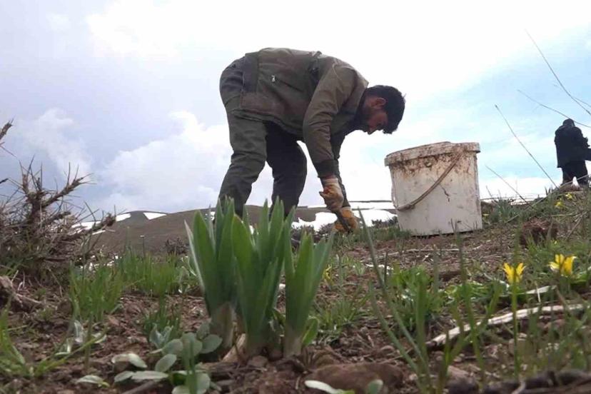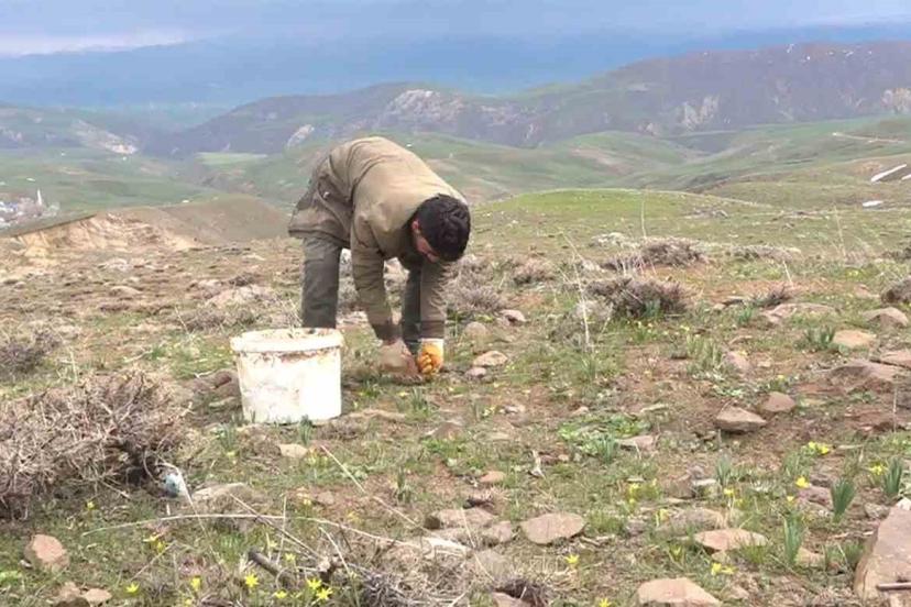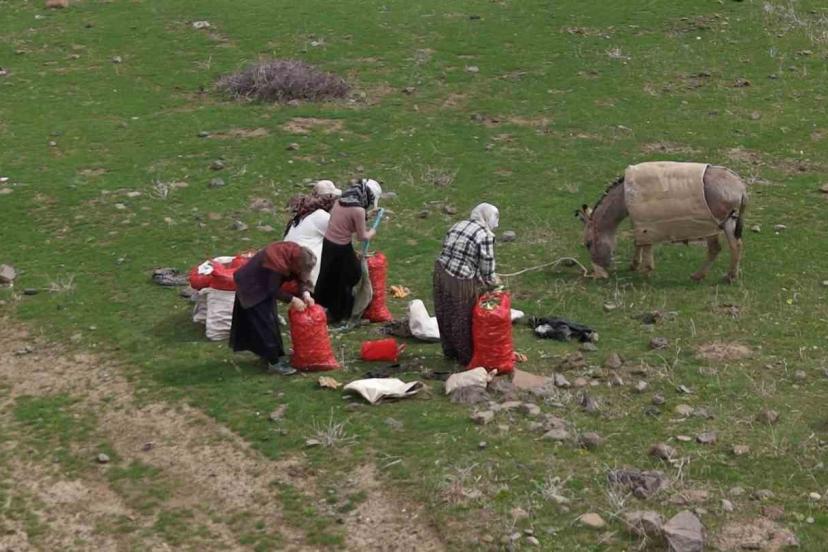 Muş’ta baharın gelişiyle dağlarda kendiliğinden yetişen çiriş otu, vatandaşlar için gelir kapısına dönüştü.