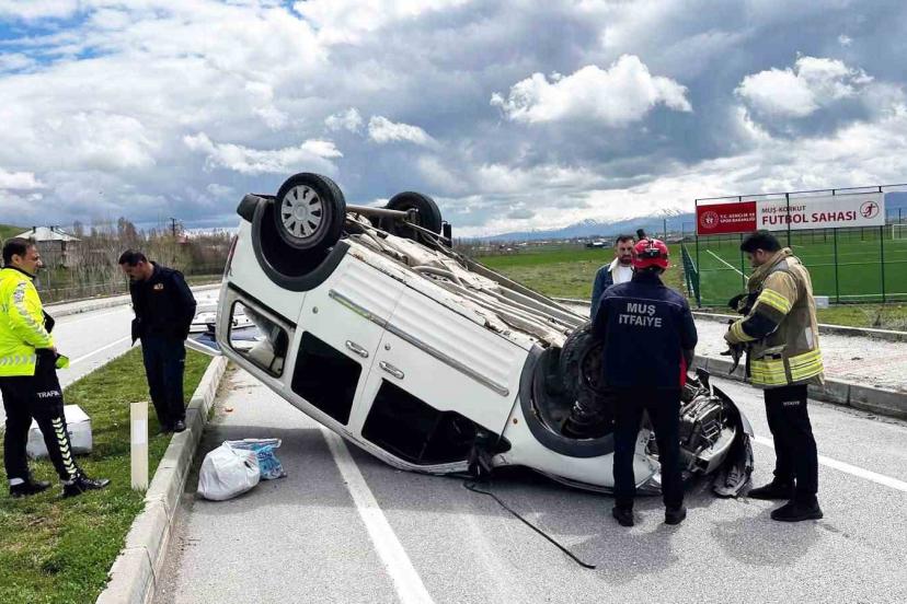 Muş’ta hafif ticari araç takla attı: 1 yaralı