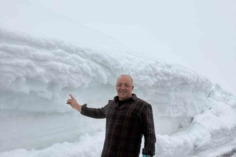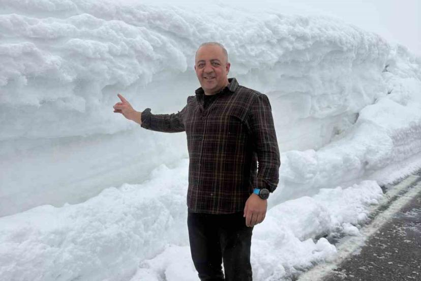 Cep telefonuyla kaydedilen görüntülerde karayolunun beyaza bürünmesi ve kar yağışı ve karayolunun iki tarafında yığılan metrelerce yükseklikte buluna kar kütleleri yer alıyor.