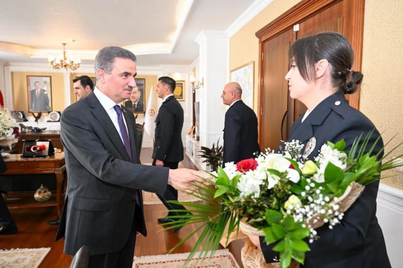 Türk Polis Teşkilatı’nın Kuruluşu’nun 181. yılı münasebetiyle, İl Emniyet Müdürü Onur Karaburun, Polis Meslek Eğitim Merkezi Müdürü Mehmet Özdemir ve beraberindeki teşkilat mensupları, Vali Aydın Baruş’u ziyaret etti. Vali Baruş, köklü geçmişiyle milletin huzur ve güvenliği için fedakârca görev yapan Türk Polis Teşkilatı’nın yıl dönümünü kutladı.