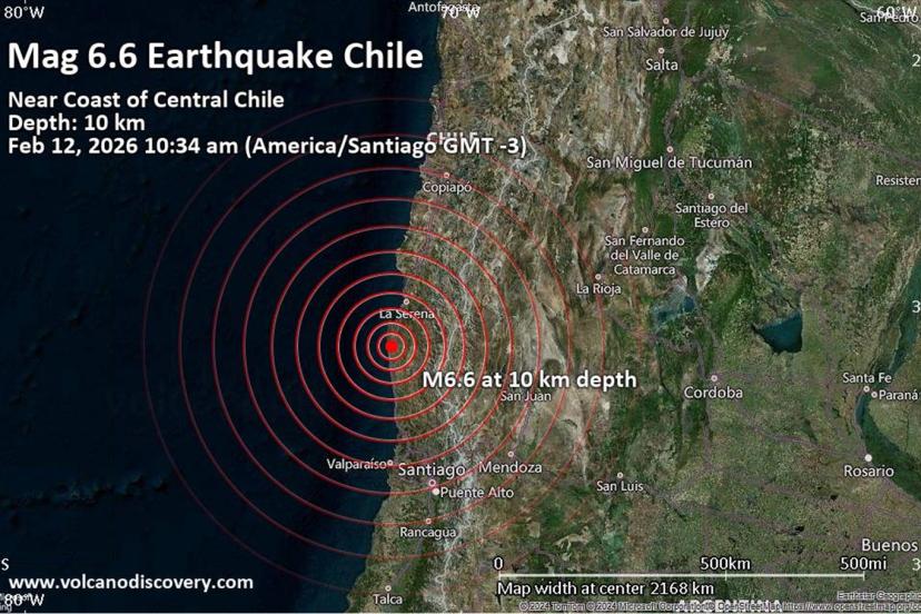 Alman Jeoloji Araştırma Merkezi (GFZ), Şili'nin orta kesiminde 6,6 büyüklüğünde bir deprem meydana geldiğini bildirdi.