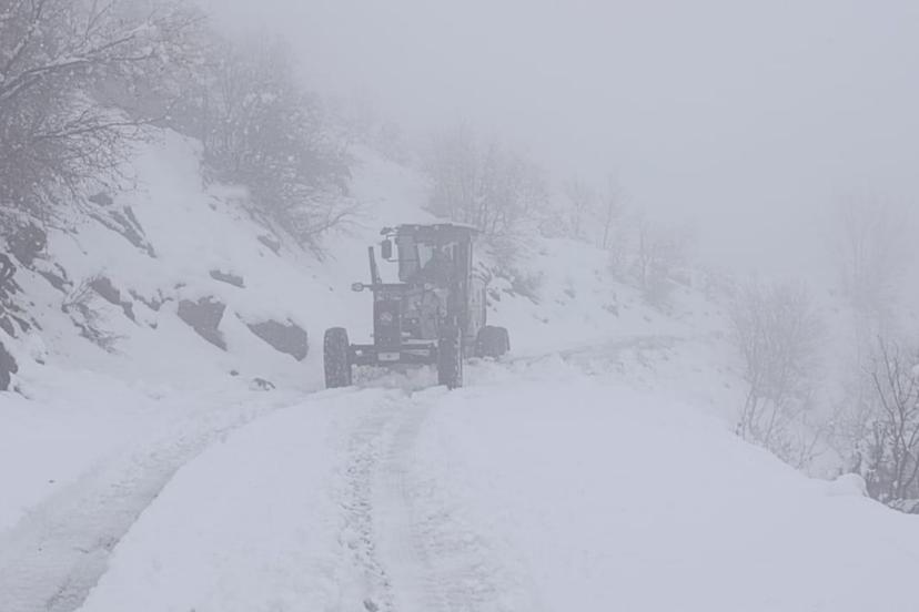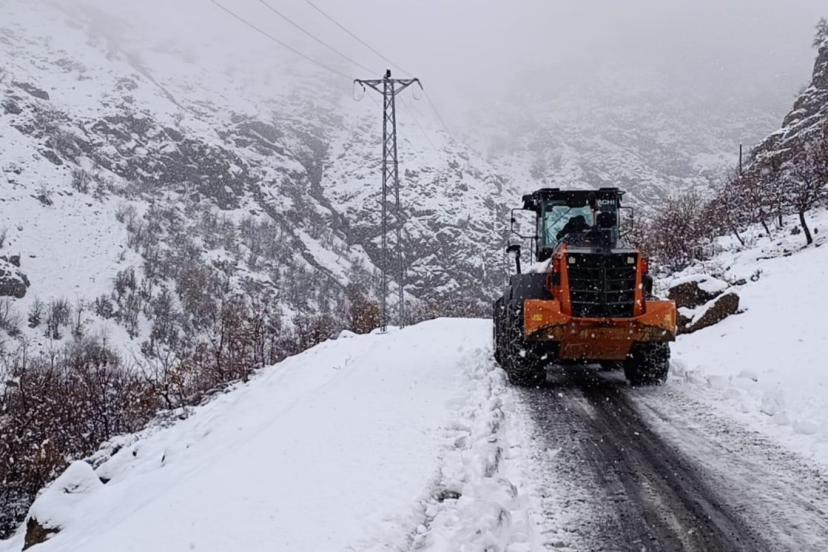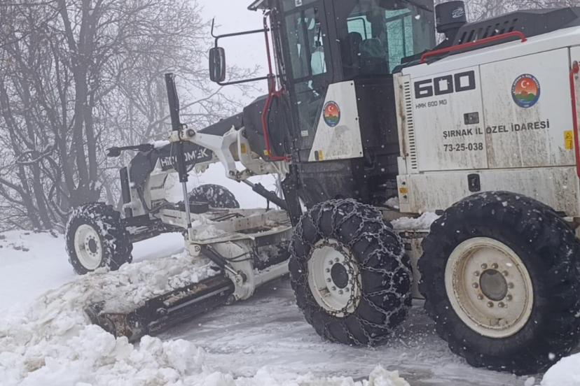 Şırnak'ta etkili olan kar yağışı sonrası Beytüşşebap ilçesinde kapanan grup köy yollarının açılması için çalışmalar devam ediyor.