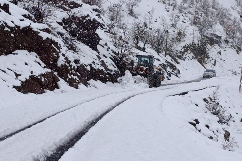 Şırnak’ın Beytüşşebap ilçesinde etkili olan kar yağışı, köy yollarının kapanmasına neden oldu.