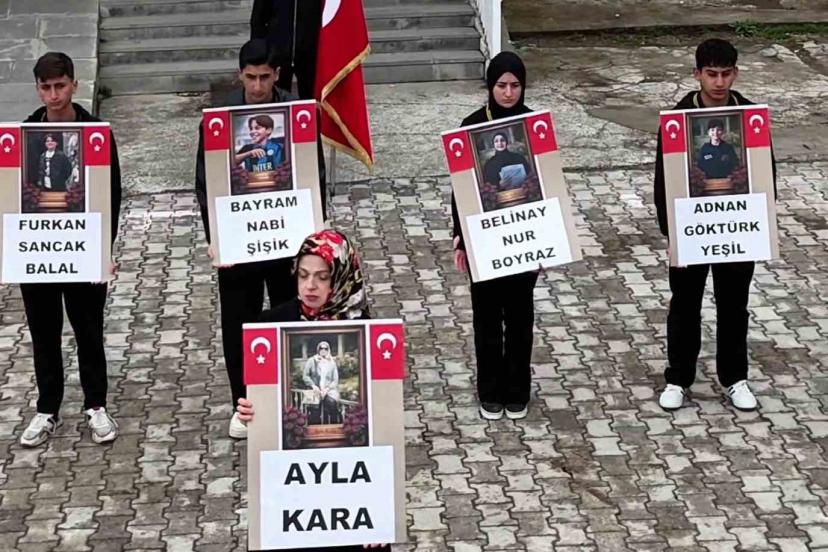 Kahramanmaraş saldırısında vefat eden öğrenci ve öğretmen için Erzurum’un Tekman ilçesinde anma programı yapıldı.