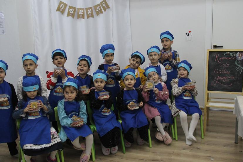 Tekne orucu tutan minikler aileleri için güllaç hazırladı