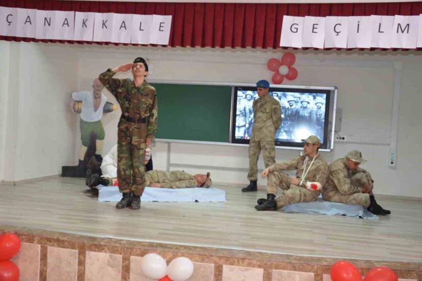 Programda günün anlam ve önemini belirten konuşmanın ardından öğrenciler tarafından "Çanakkale Destanı" oratoryosu, koro dinletisi, "Çanakkale Geçilmez" gösterisi ve "Kınalı Hasan" adlı tiyatro oyunu sahnelendi.