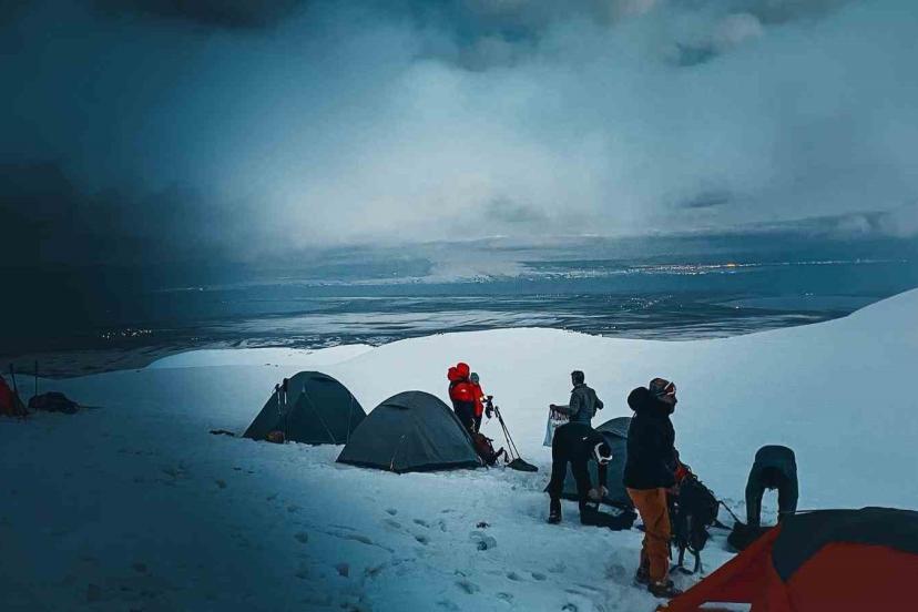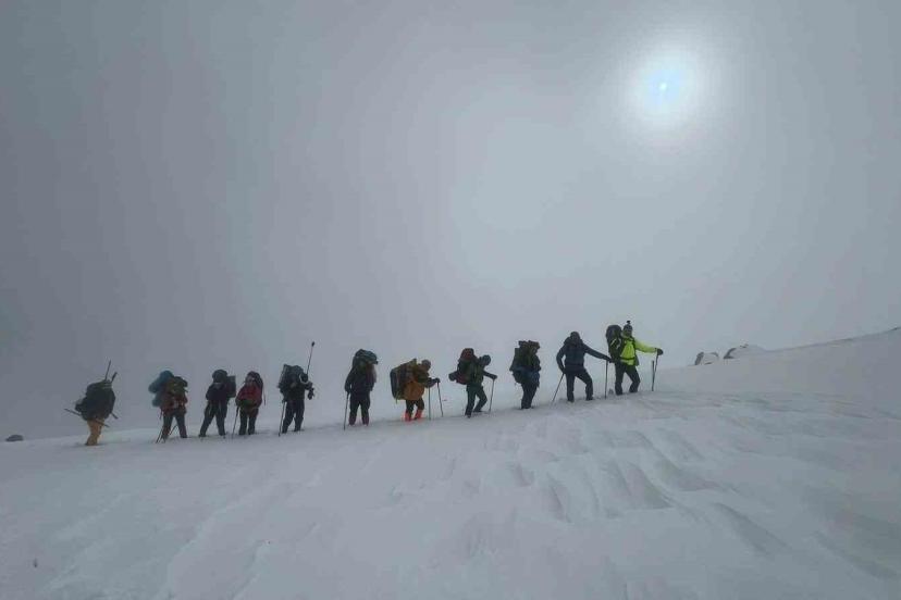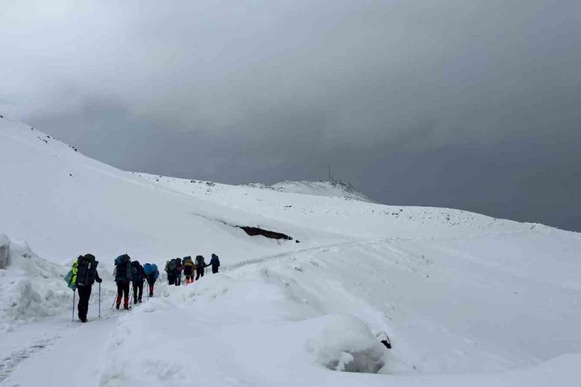 Bitlis’in Adilcevaz ilçesinde 12 dağcı, tipi ve kar yağışı nedeniyle Süphan Dağı zirve tırmanışını tamamlayamadı.