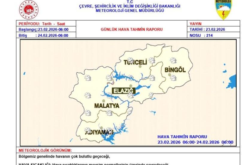 Meteoroloji 13. Bölge Müdürlüğü, Tunceli ve Bingöl için çığ uyarısında bulundu. Meteoroloji 13. Bölge Müdürlüğü tarafından ya...