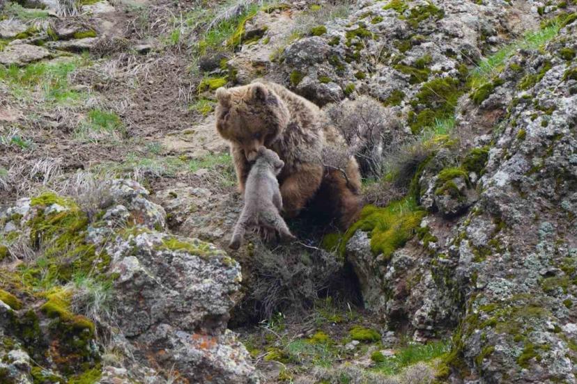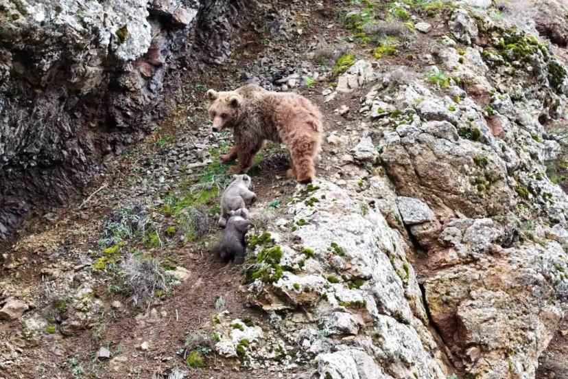 Tunceli’de kaydedilen görüntüler, yaban hayatının en özel anlarından birini gözler önüne serdi. Dağlık alanda görüntülenen bir ayılar ve yavruları, izleyenlere adeta belgesel sahnelerini aratmayan anlar yaşattı. Görüntülerde bir anne ayının yavrularını emzirdiği anlar net bir şekilde kaydedildi. Bir süre sonra hareketlenen yavruların kayalık alana doğru ilerlediği, annenin ise onları dikkatle yönlendirdiği görüldü. Zorlu arazi şartlarında ilerlemekte zorlanan yavrularına yardım eden anne ayı, zaman zaman geri dönerek onların güvenli şekilde tırmanmasını sağladı.