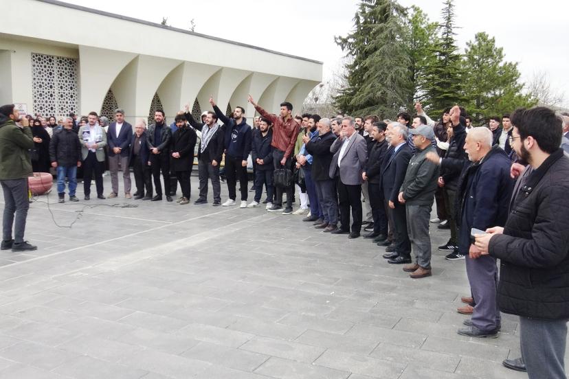 Özyazgan, "Bugün burada, Gazze'den yükselen direniş çağrısına kulak vermek, mübarek Mescid-i Aksa’nın özgürlüğü için ses olmak ve siyonist işgal zindanlarında zulüm gören esir kardeşlerimizle dayanışma içinde olduğumuzu haykırmak için toplandık. Gazze’deki mücahitlerin çağrısıyla 3 Nisan cuma günü 'Gösteri ve Esirler Cuması' ilan edilmiştir. Bizler de İnönü Üniversitesi öğrencileri olarak bu çağrıya icabet ediyor, bugünü bir seferberlik ve halk öfkesi günü olarak ilan ediyoruz. Bugün susmak, zulme ortak olmaktır. Bugün konuşmak, direnişin bir parçası olmaktır." dedi.