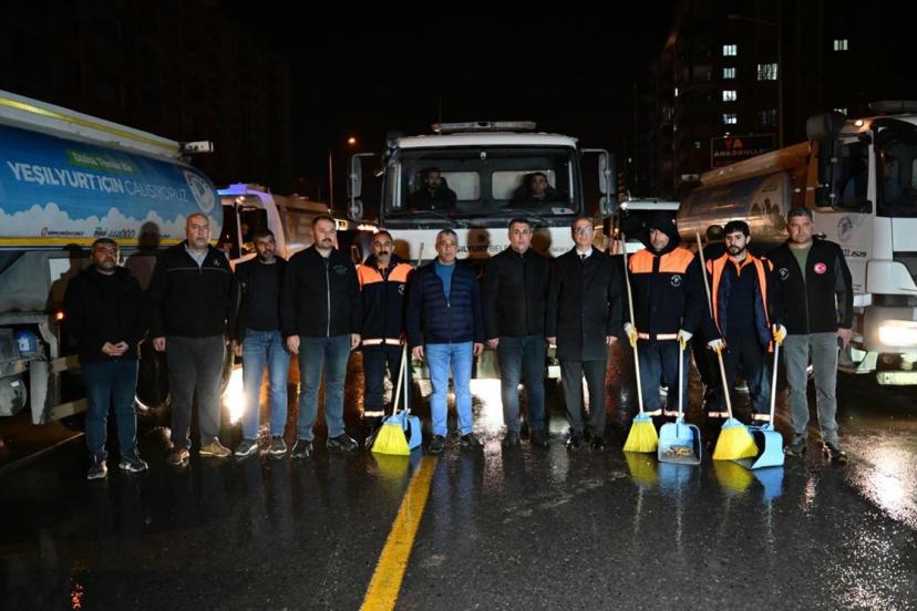 Yeşilyurt Belediyesi Temizlik Hizmetleri Müdürlüğü ekipleri tarafından gerçekleştirilen çalışmalarda ana arterler başta olmak üzere cadde ve sokaklar yıkanırken, kaldırımlar detaylı şekilde temizleniyor. Gece boyunca süren yoğun mesai ile ilçenin dört bir yanında kapsamlı bir temizlik çalışması yürütüldü.