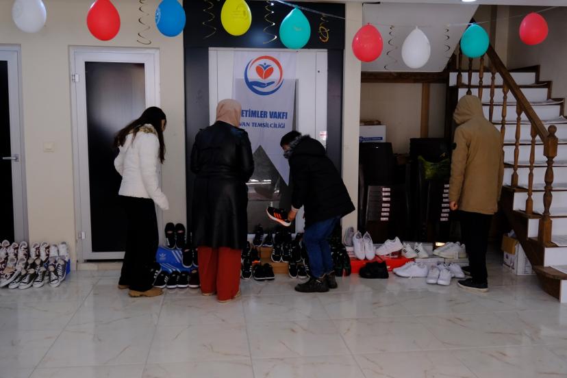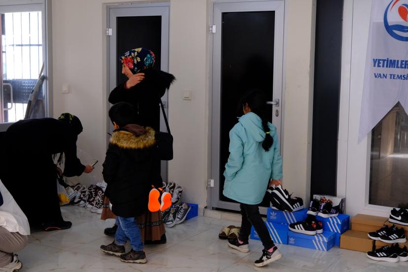 Yetimler Vakfı Van Temsilciliği, Kadir Gecesi ve yaklaşan Ramazan Bayramı dolayısıyla onlarca yetim aileye nakdi yardımda bulunurken, çocuklara bayramlık ayakkabı hediye etti.