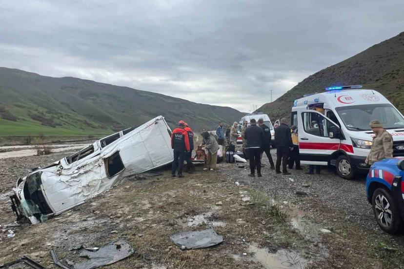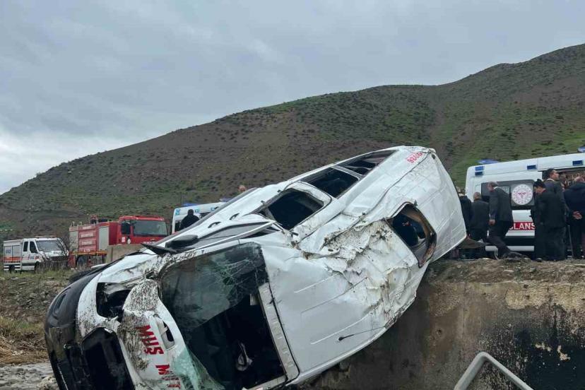 Muş-Bulanık kara yolunda yolcu minibüsünün dere yatağına devrilmesi sonucu 16 kişi yaralandı.