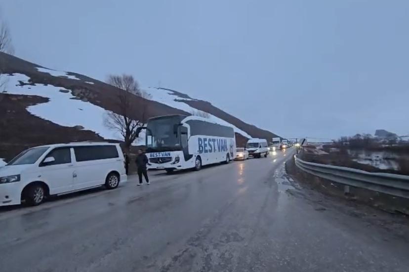 Van kara yolu kapanırken, yüzlerce araç ise yolda kaldı.