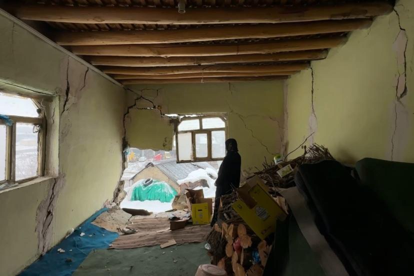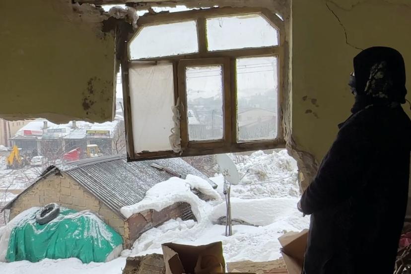 Yoğun kar yağışının etkili olduğu Hakkari’nin Yüksekova ilçesinde bir evin duvarı çöktü. Uykusunda yakalandığı felaketi deprem zannederek büyük korku yaşayan Pirüze Bala, kış ortasında evsiz kaldı.